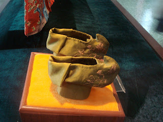 We had gone to at least one cultural museum in every city that we visited. In some cities we visited two and maybe three museums and still in all those cultural exhibitions I had only come across one pair of little shoes for those tortured feet. And that pair had been in the museum at the Ming dynasty tombs. But these little shoes looked so new that I’m sure they had been replicas specifically made for the museum.